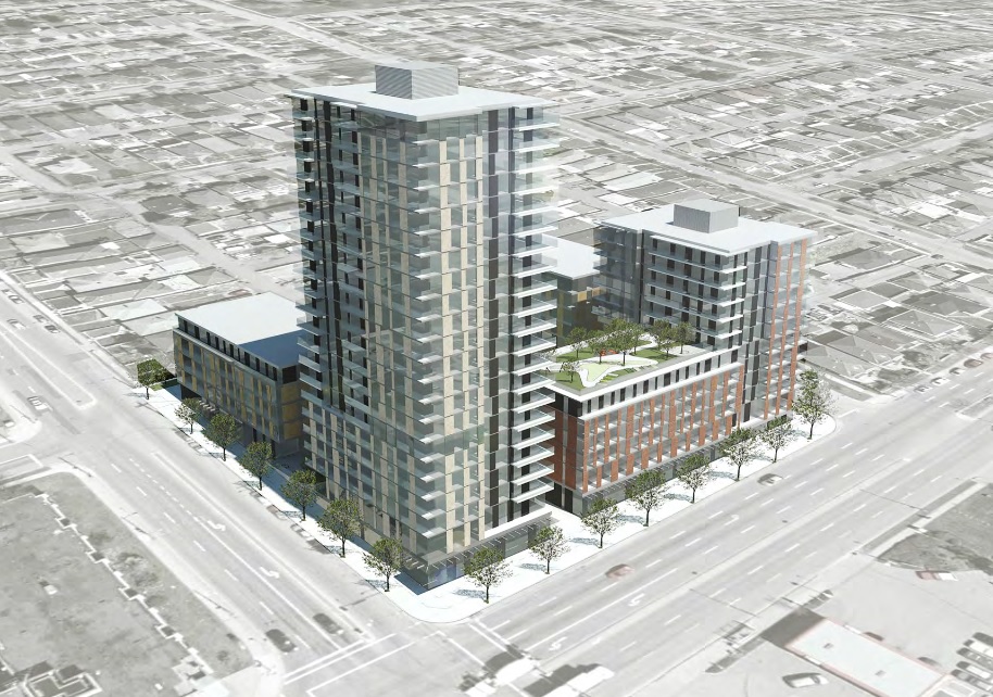 After an initial inquiry earlier this year, a formal rezoning application has now been submitted for the 1.8 acre Super-8 Motel site at the corner of Fraser and SE Marine Drive in East Vancouver (formerly known as the Blue Boy Motor Hotel).