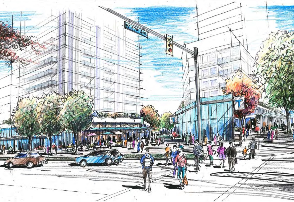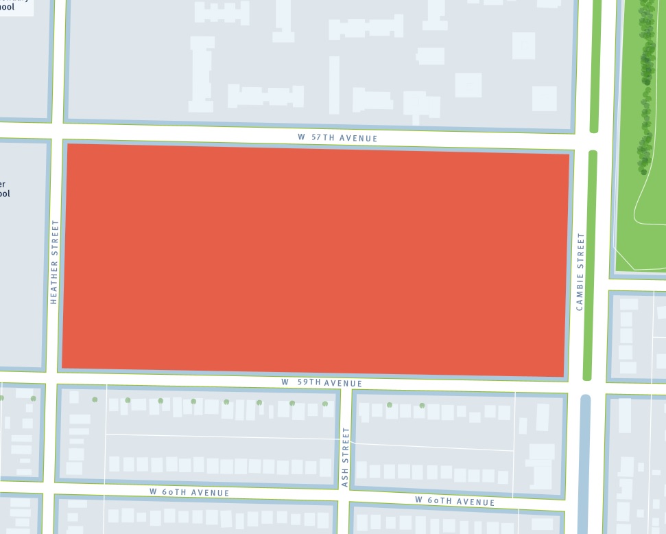 Details have emerged regarding the rezoning of the Pearson Dogwood site at 500-650 West 57th Avenue, as the full rezoning application has now been released. Onni‘s proposed plan for the 25-acre site at Cambie and 57th is for a large-scale mixed-use development that will include: