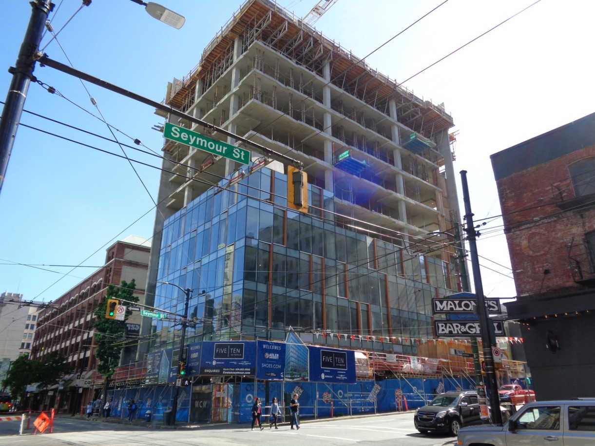 The above chart reflects data on all MLS sales for condo units that were one year old or newer at the time of sale, and only includes neighbourhoods with sales in multiple buildings. Pricing is slightly distorted by product type; for example, all of the downtown condo product is concrete highrise which is more expensive, whereas all of Maple Ridge product is in lowrise or townhouse form that is much cheaper to build and sell. Nevertheless, some may find the average pricing stats interesting.