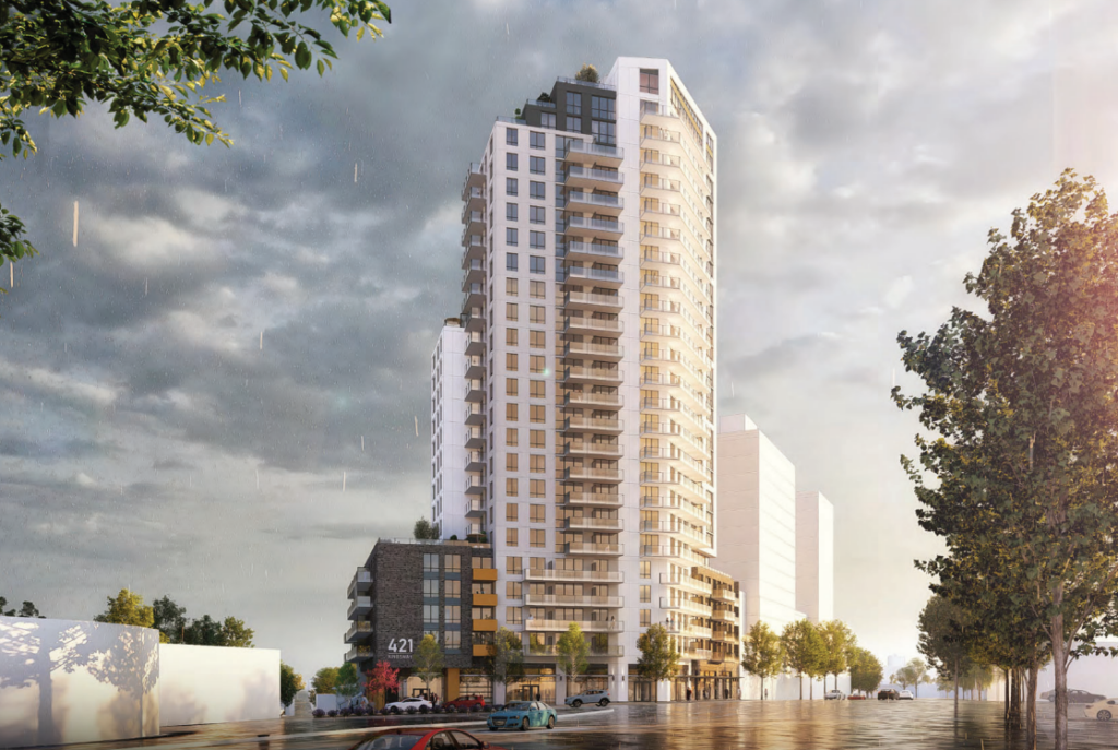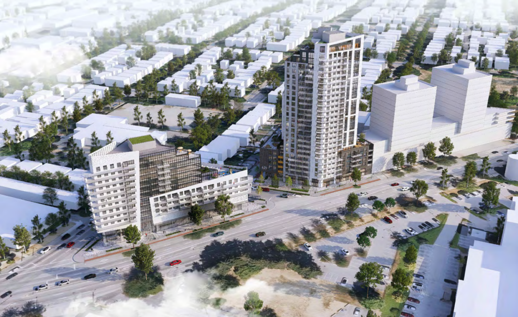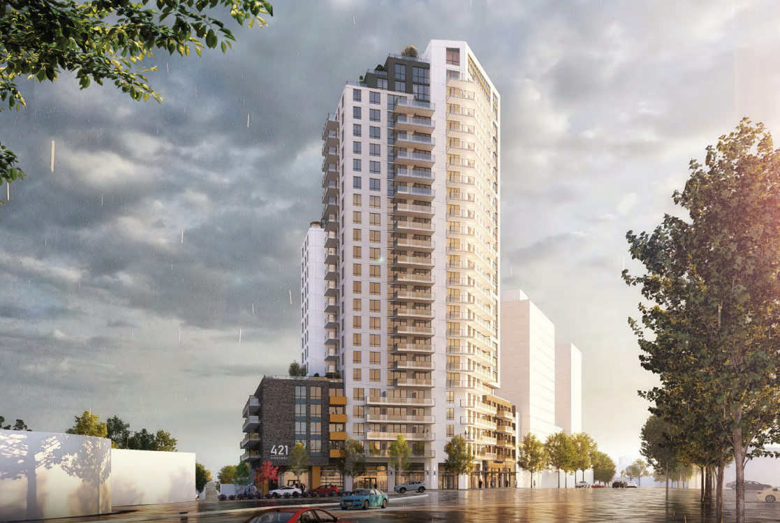 The applications call for a rental tower and condo tower under the guidelines in the Broadway Plan.