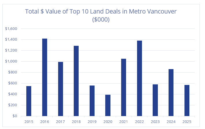Here’s a look at each of the 10 largest land deals in Metro Vancouver this year: