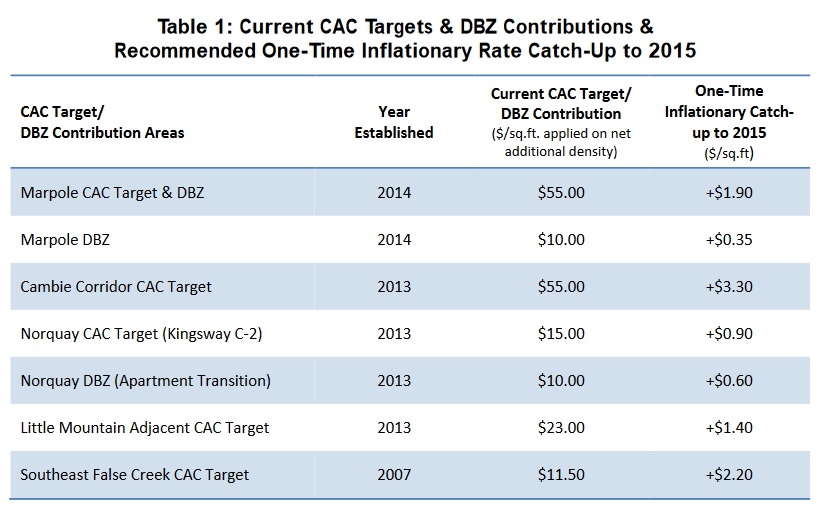 - monitoring the pace of rezoning and redevelopment activity in each CAC target and DBZ contribution areas.