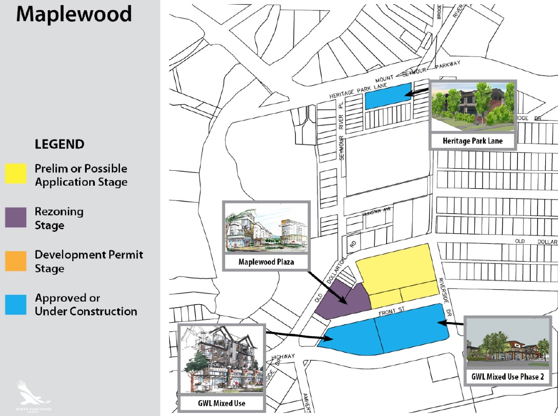 The City of Burnaby put plans in place several years ago to concentrate growth in and near major rapid transit (Skytrain) nodes, particularly in four town centre areas they identified as follows:
