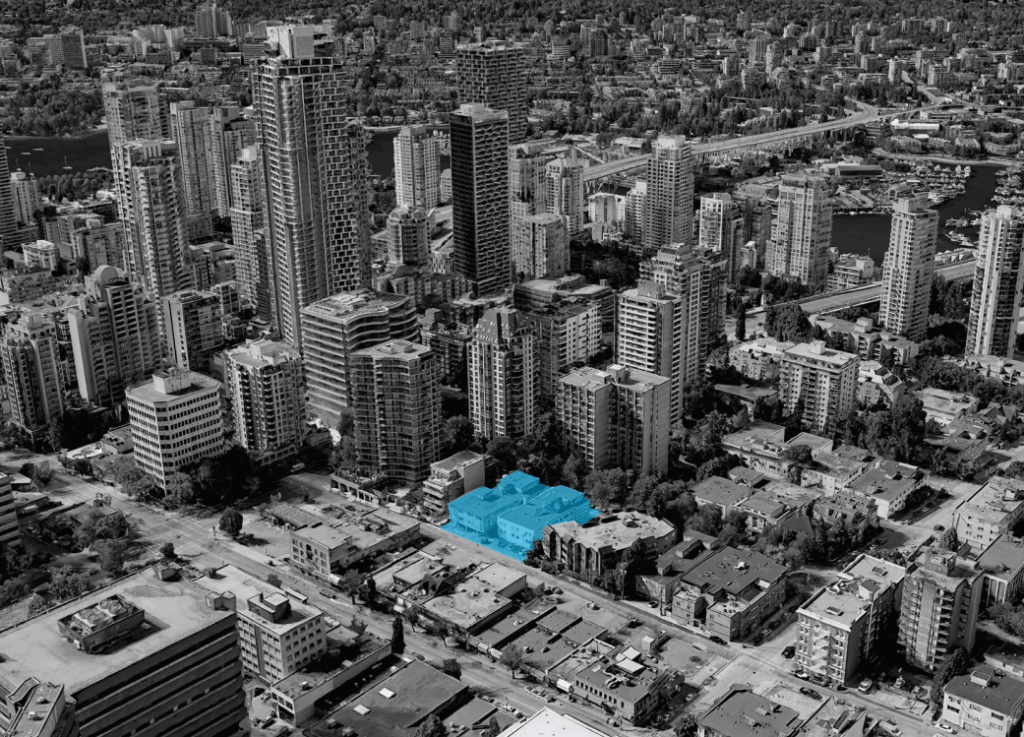 Nonni Property Group has submitted their rezoning application for the 15,714 SF site that they own at 888-896 Cambie Street, at the Northeast corner of Cambie and Smithe on the edge of Yaletown and Downtown.