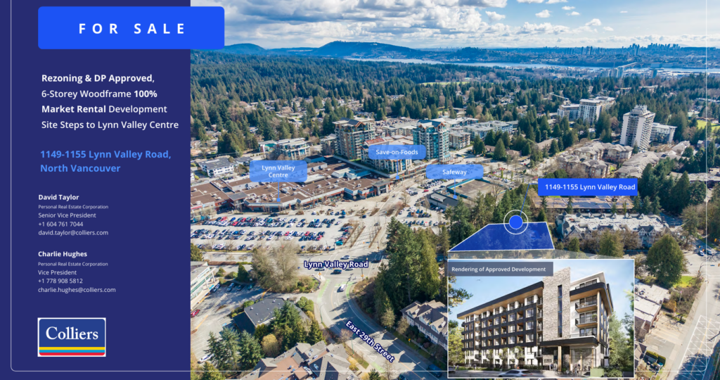 Click here for further details: https://www.collierscanada.com/en-ca/properties/for-sale-rezoning-dp-approved-6-storey-woodframe-100-market-rental-in-lynn-valley/can-1149-1155-lynn-valley-road-north-vancouver-bc/can2020284